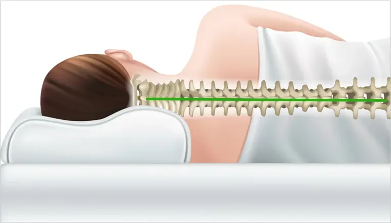 Your head, neck, and shoulders are supposed to rest in a straight, neutral line overnight. That way, your muscles can relax and your nerves stay free from pressure.